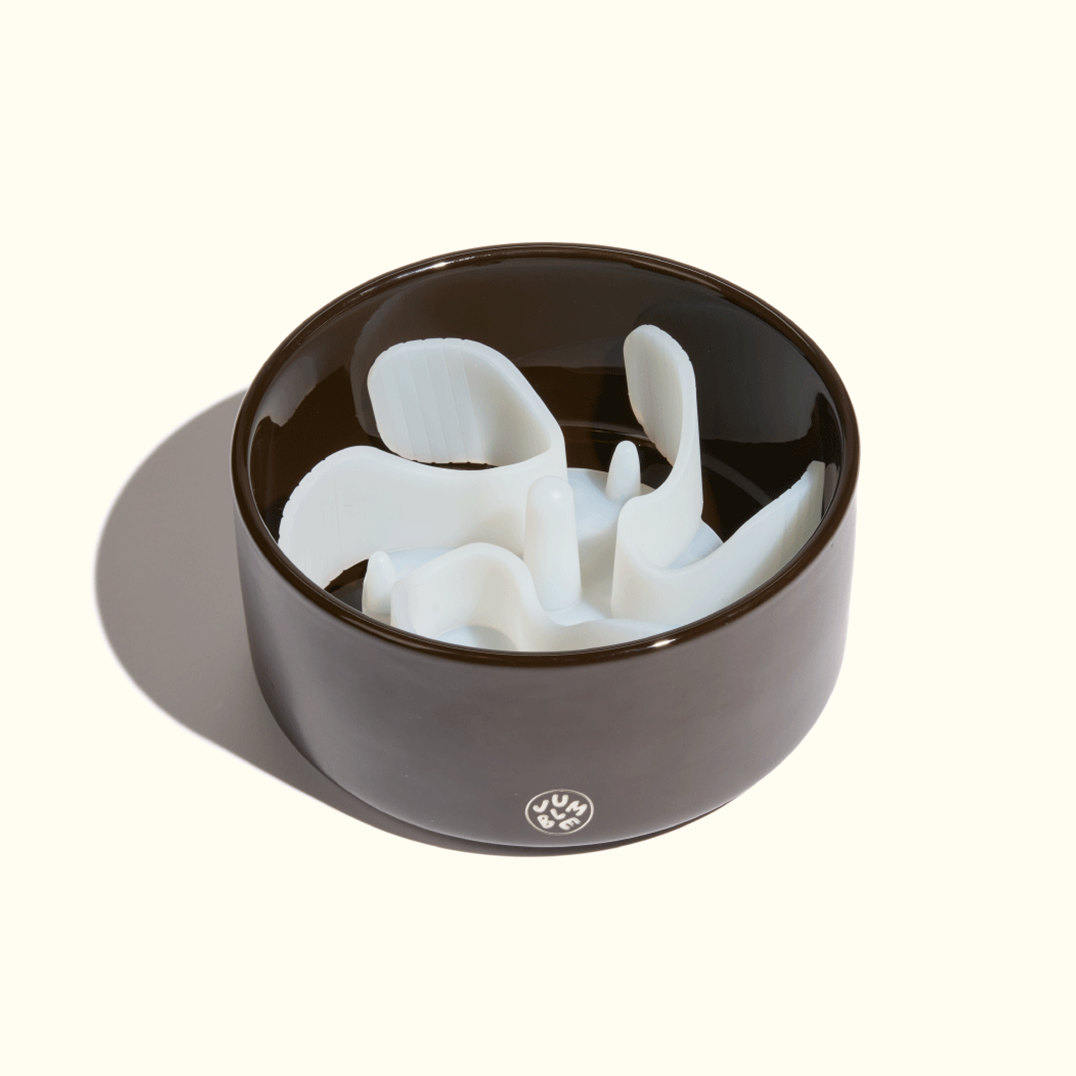 The Charcoal Frost Munch Maze is the slow feeder for "no-color-please" dog parents. Unlike most plastic slow feeders, this bowl's made from premium ceramic with a weighted base, paired with a frosted clear silicone maze insert that keeps things sleek and serious. The munch-maze bowl holds 4-6 cups of dry or wet food turning any speed-eater into a more chill dining companion. The soft silicone insert suctions to the bottom of the bowl and lifts out when it's time to clean (both pieces are dishwasher safe).