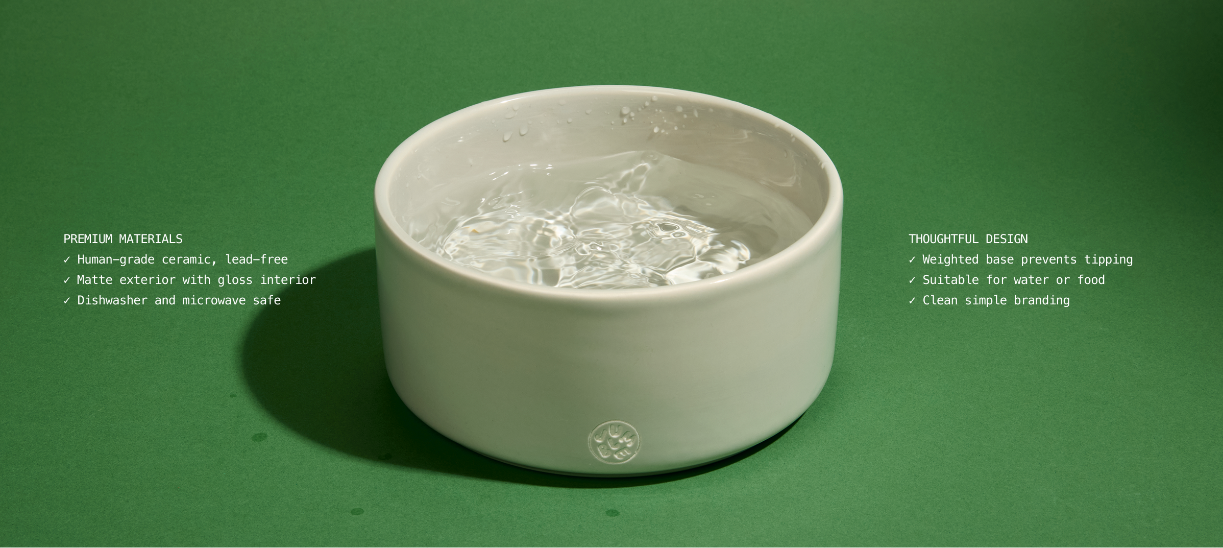 A premium ceramic bowl that works however you need it. Use it as a dedicated water station for your thirsty doggo, a standalone food bowl for dogs who already pace themselves, or pair it with any colored insert to build your own custom setup. The weighted base keeps it steady no matter what's inside, and the design looks intentional in your space. One bowl, your call.